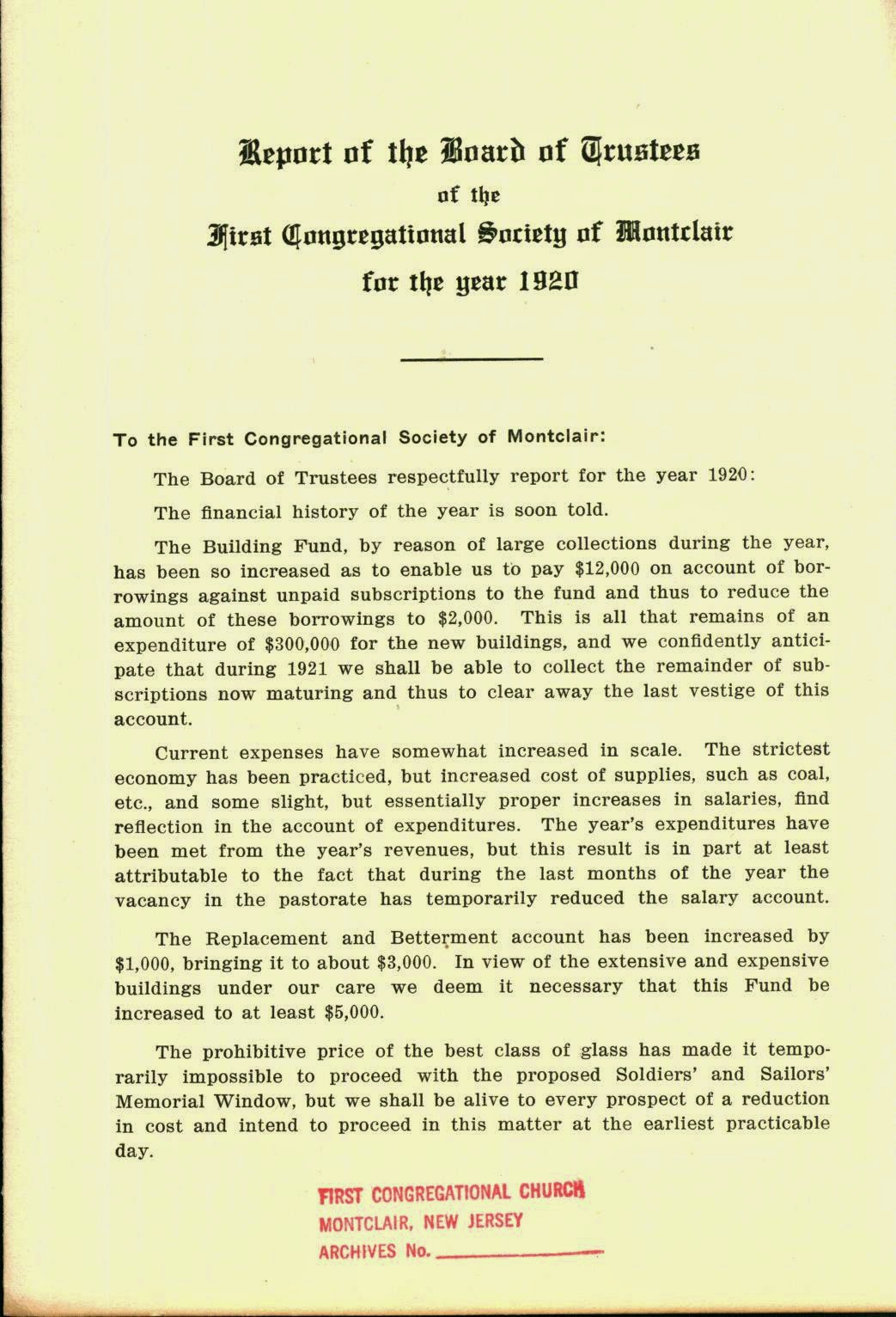 Report of the Board of Trustees, 1920